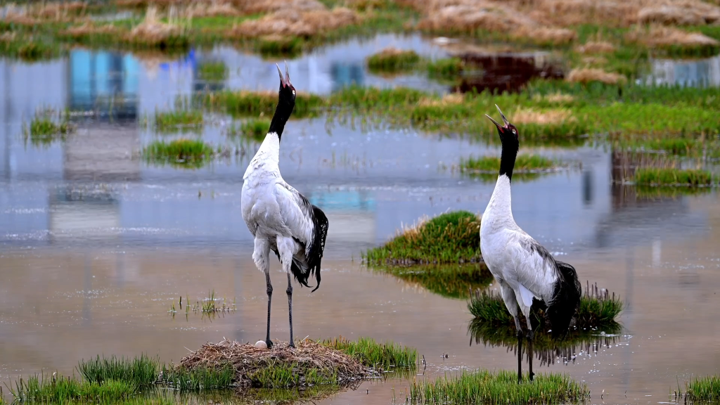 說到這里,次成塔青突然轉(zhuǎn)過身,看向高高麗麗和它們的孩子。開始下雨了,水面上鋪滿了細密的漣漪,而在濕地中央那一個不大的巢上,是一動不動、用身子緊緊護住孩子的黑頸鶴??粗@一幕,風雨似乎也沒有那么刺骨了……