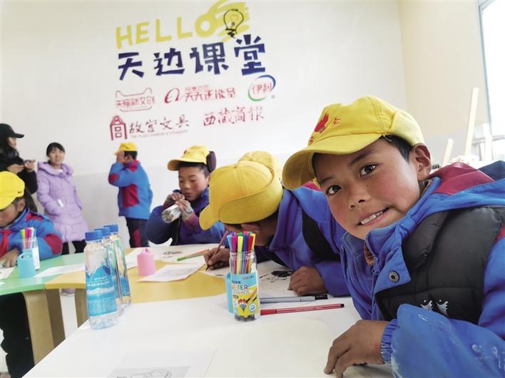2019年8月,當(dāng)孩子們迎來新的一學(xué)期,天貓、人民日報和故宮聯(lián)合宣布,故宮文具上線天貓。為了給孩子們一份特別的禮物,天貓新文創(chuàng)、阿里巴巴天天正能量、伊利、故宮文具、西藏商報聯(lián)合發(fā)起“天邊課堂”公益項(xiàng)目,為西藏一所村小改造一間海拔最高的“天邊課堂”教室,為孩子們送上故宮文具,設(shè)計形式多樣的美育課程,助力鄉(xiāng)村孩子在開學(xué)伊始揚(yáng)帆起航,開啟新學(xué)期新體驗(yàn)。