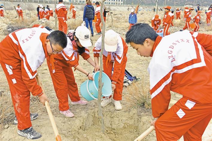 西藏林芝廣東實(shí)驗(yàn)學(xué)校組織學(xué)生參加義務(wù)植樹(shù)活動(dòng)