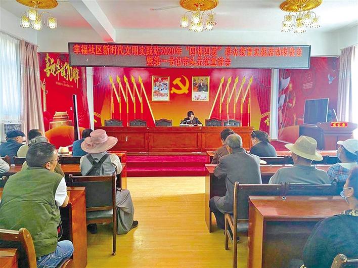 近日,拉薩市功德林街道幸福社區(qū)組織社區(qū)居民代表、組長(zhǎng)、聯(lián)戶代表等共100余人,開展了新時(shí)代文明實(shí)踐站2020年“四講四愛”群眾教育實(shí)踐活動(dòng)轉(zhuǎn)段會(huì)暨第一書記帶頭示范宣講會(huì)。
