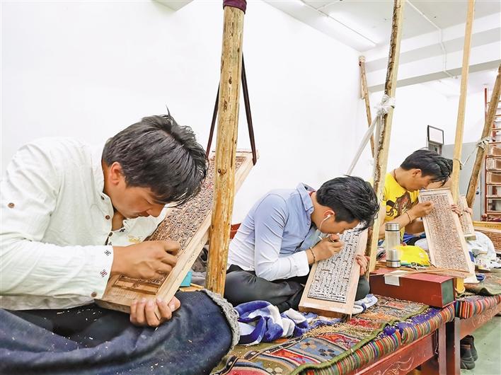 西藏雪堆白技工學(xué)校的學(xué)生們在練習(xí)木刻技術(shù)。記者 孫文娟 攝