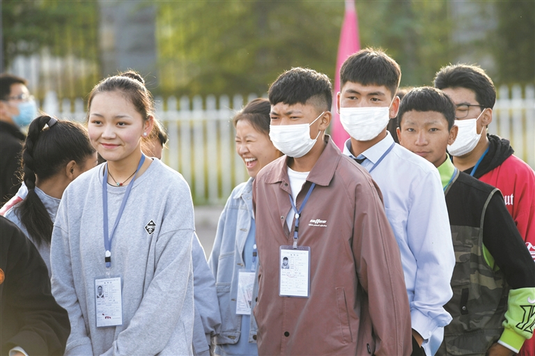 當(dāng)日上午8時(shí),考生統(tǒng)一乘坐拉薩市公交公司高考愛心接送車來(lái)到拉薩中學(xué)考點(diǎn)。在疫情防控常態(tài)化背景下,考生手拿準(zhǔn)考證、身份證,戴著口罩,排隊(duì)測(cè)量體溫之后,有序進(jìn)入考場(chǎng)。為應(yīng)對(duì)突發(fā)狀況,考點(diǎn)外設(shè)置了隔離區(qū),并有醫(yī)療人員駐守。參加高考的考生之間也互相加油打氣,考生拉巴頓珠說(shuō):“祝愿大家都能好好發(fā)揮,考上自己心儀的學(xué)校?!?/p>