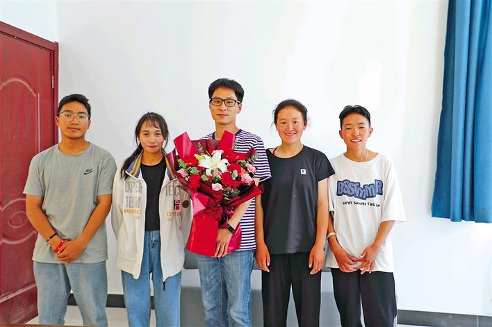 圖為西藏民族大學(xué)的學(xué)生為老師送上鮮花,表達祝福和謝意。記者 王莉 攝