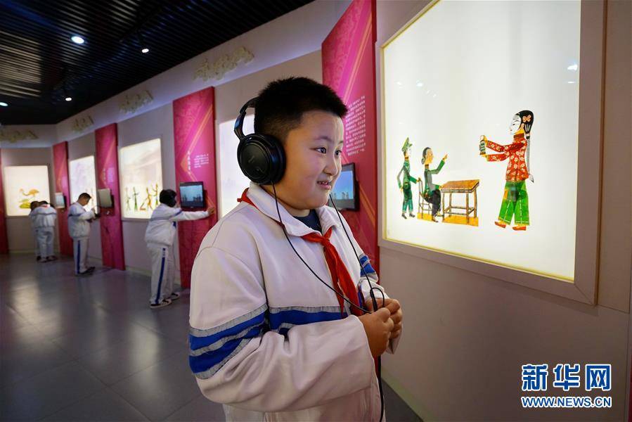10月19日,小學生們在中國灤州皮影博物館內(nèi)參觀一幅皮影長卷。 今年以來,河北省灤州市橫渠實驗小學成立皮影興趣社團,在當?shù)氐闹袊鵀粗萜び安┪镳^開設校外課堂,組織學生定期參觀、學習,增強學生對傳統(tǒng)文化的了解。