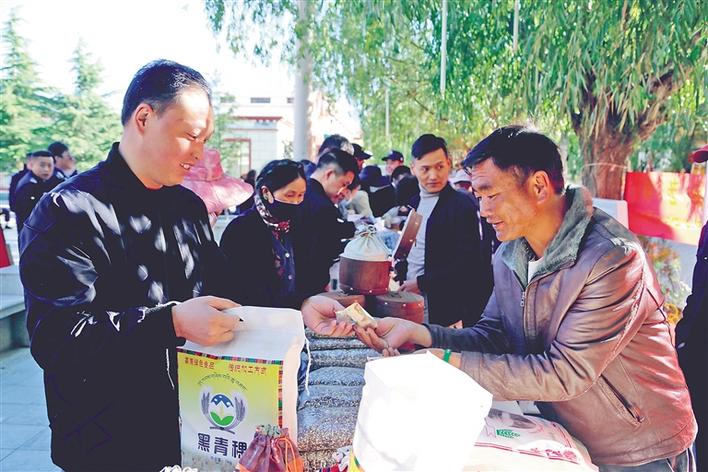 圖為當(dāng)?shù)厝罕娫谶x購扶貧產(chǎn)品。本報(bào)記者 次旺 攝