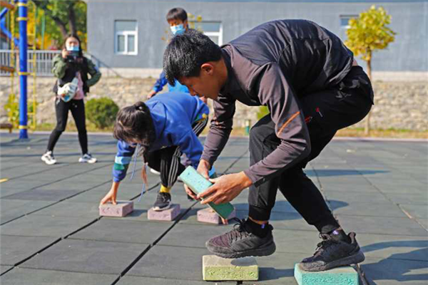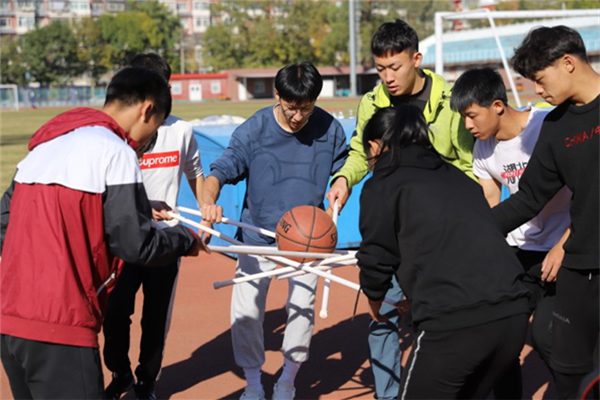 以“挑戰(zhàn)自我,熔煉團隊”為主要理念的拓展運動,在“樂動會”、“以問題為本”、“冒險體驗”、“全適能”等教育理念支撐下,按照“體能消耗適中、心理挑戰(zhàn)較大、團隊熔煉為主”的思路,設(shè)計成體育課的一個專項,通過一系列全新的“項目游戲”設(shè)計,讓學生“玩起來、樂起來、動起來”。并通過“小游戲,大道理”進行引導反思,幫助學生掌握身體健康、心理健康和社會適應等方面的知識和技能,成為體育與教育完美結(jié)合的新模式。