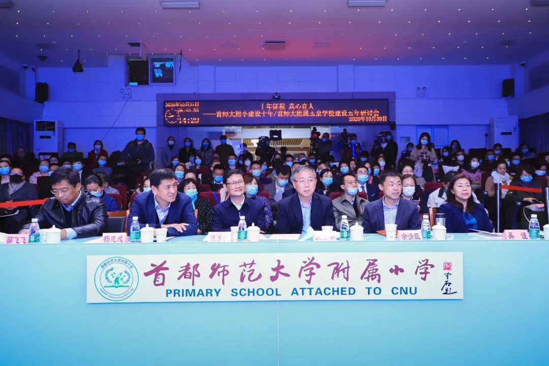教育部基礎教育司副司長陳東升、首都師范大學校長孟繁華、首都師范大學副校長楊志成、海淀區(qū)教委副主任吳謹、四季青鎮(zhèn)鎮(zhèn)長薛飛飛,以及海淀區(qū)兩委主要領導及科室領導、首師大主要領導及初教院、教師教育學院等領導和專家,學校周邊部隊、社區(qū)領導,部分中小學、幼兒園校長、園長,學校家長代表等近200人現(xiàn)場參會。
