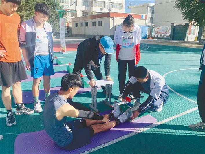 “全民健身·活力中國(guó)”國(guó)家體育鍛煉標(biāo)準(zhǔn)達(dá)標(biāo)測(cè)驗(yàn)賽日喀則站活動(dòng)中,學(xué)生在進(jìn)行坐位體前屈測(cè)試。記者 潘璐 攝