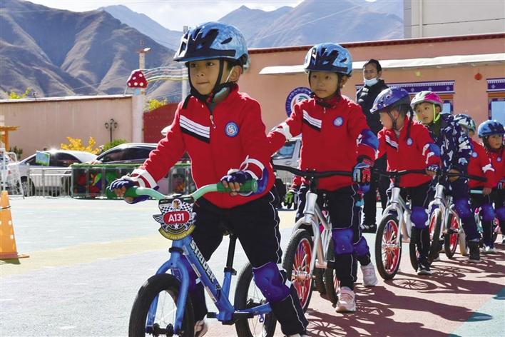 2020年西藏自治區(qū)“體育項目進校園”活動-兒童滑步車項目17日在拉薩市實驗幼兒園本部園區(qū)舉行,現(xiàn)場幼兒園的孩子們在教練的指導(dǎo)下學(xué)練滑步車。[詳細]