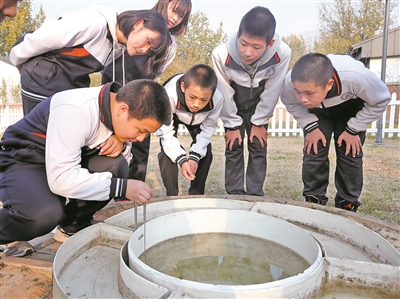 水庫(kù)地區(qū)的降水量怎樣?蒸發(fā)量如何?這些都是水庫(kù)中學(xué)學(xué)生關(guān)注的問(wèn)題,大家要在課題研究中讀懂家鄉(xiāng)的山水。瞧,學(xué)生們那股專(zhuān)注勁兒,儼然水環(huán)境監(jiān)測(cè)的“小專(zhuān)家”。樊世剛 攝