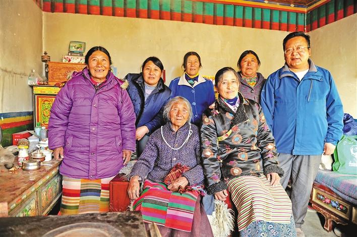 圖為烏巴·平措南加的妻子次仁卓嘎和6個子女合影,左二為格桑玉珍,右一為曲阿。記者 溫凱 洛桑旦增 達珍 攝