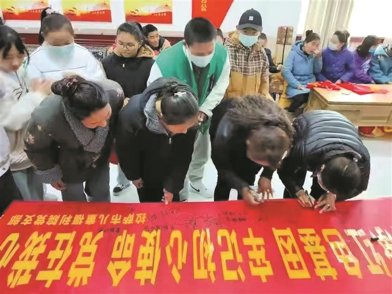 圖為拉薩市兒童福利院組織干部職工和在院孤兒簽名承諾積極踐行社會(huì)主義核心價(jià)值觀。(拉薩市兒童福利院供圖)