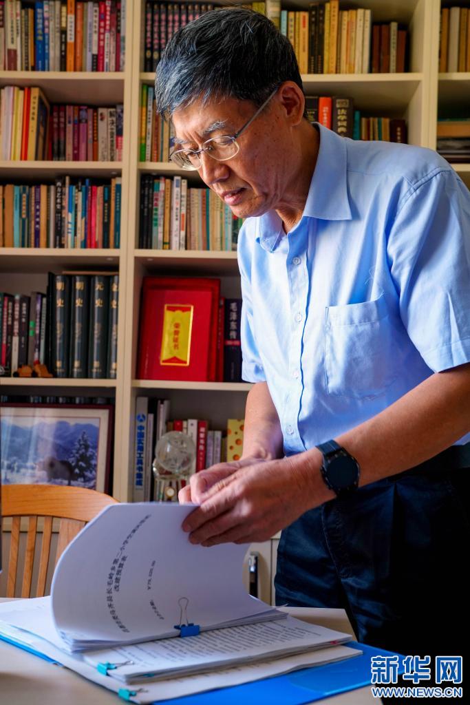4月28日,李純民在天津家中整理助學材料。新華社記者 黃臻 攝