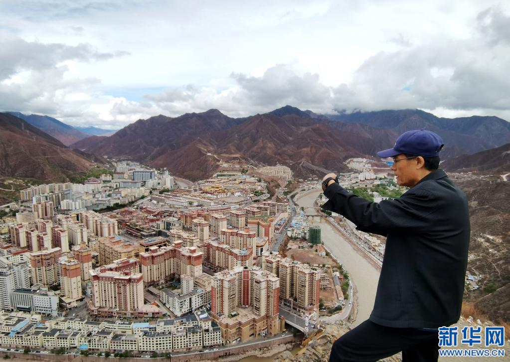 5月11日,李純民在西藏昌都拍攝城市新貌。新華社記者 普布扎西 攝