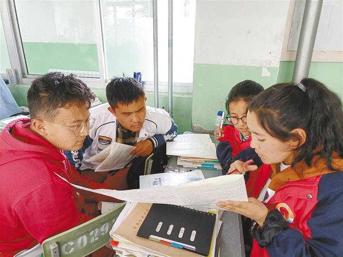 圖為西藏軍區(qū)拉薩八一校的備考學生討論習題。