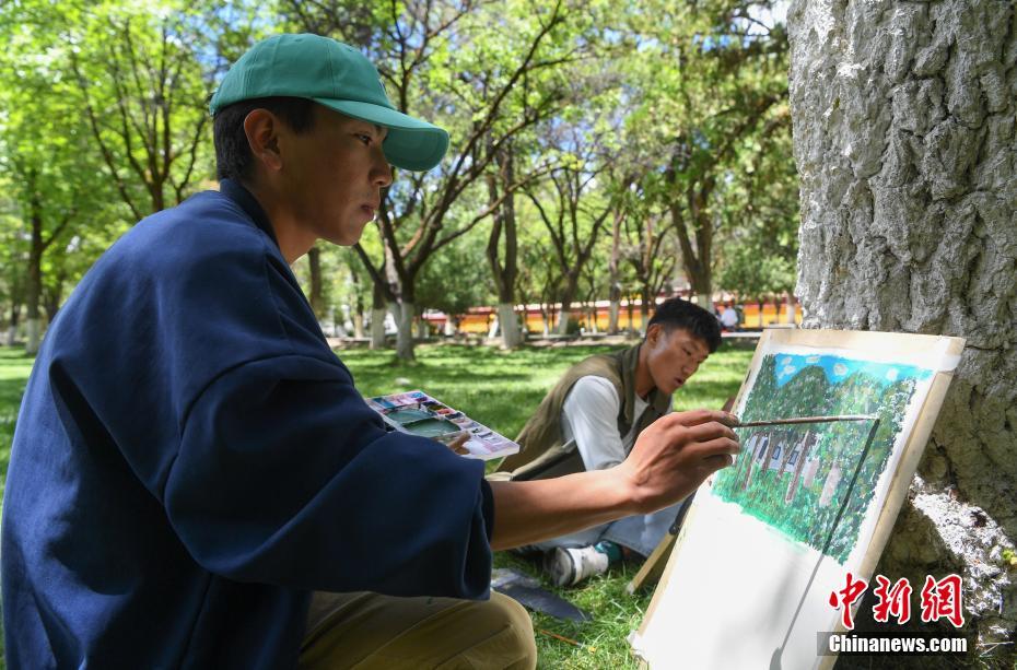 7月8日,西藏大學(xué)建筑系學(xué)生前往西藏自治區(qū)拉薩市城關(guān)區(qū)羅布林卡進(jìn)行建筑美術(shù)實(shí)習(xí)。在7天的實(shí)習(xí)中,學(xué)生們將在哲蚌寺、色拉寺等地,把西藏民族特色建筑、風(fēng)景一幅幅手繪在紙上。圖為西藏大學(xué)建筑系學(xué)生手繪羅布林卡風(fēng)景。 中新社記者 貢嘎來松 攝