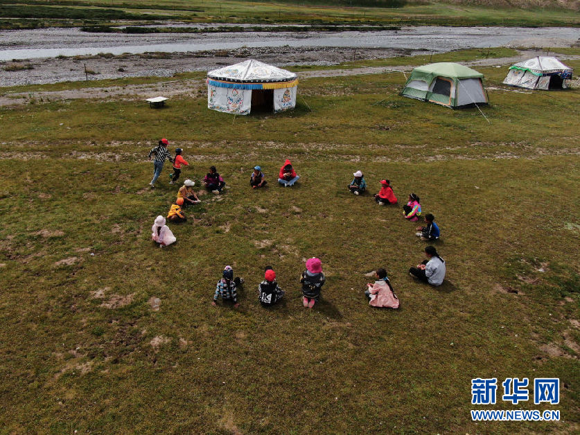 牧民轉(zhuǎn)場到夏季草場之后,居住分散,放假的孩子們往往無人看管。為解決這個問題,瑪沁縣從2018年起開辦“育苗加油站”,聘請暑假回鄉(xiāng)的大學(xué)生,組織青少年開展形式多樣、內(nèi)容豐富的活動。