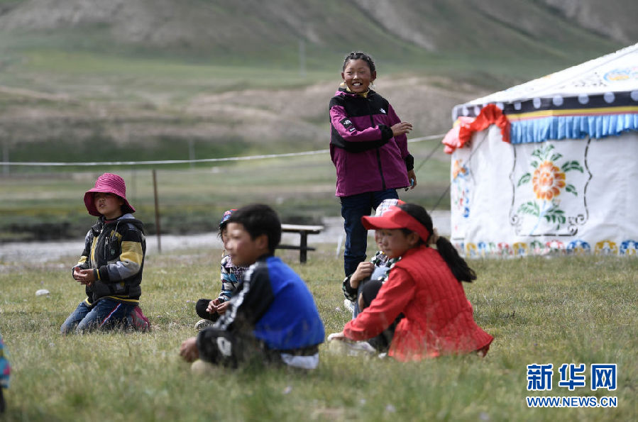 暑假里,在青海省果洛藏族自治州瑪沁縣下大武鄉(xiāng)年扎村夏季草場的“育苗加油站”里,孩子們唱歌、繪畫、游戲,享受快樂時光。