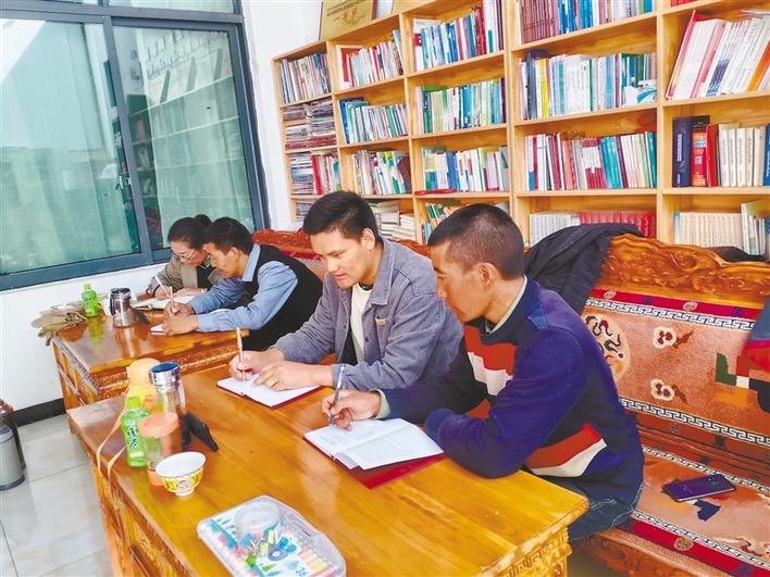 圖為薩迦縣木拉鄉(xiāng)基層工作者通過(guò)手機(jī)參與線(xiàn)上“微講堂”培訓(xùn)班學(xué)習(xí)。記者 汪純 攝