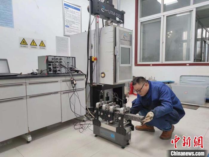黃恒偉與團(tuán)隊為莫喀高鐵項目進(jìn)行四點彎曲疲勞試驗?!∈茉L者供圖