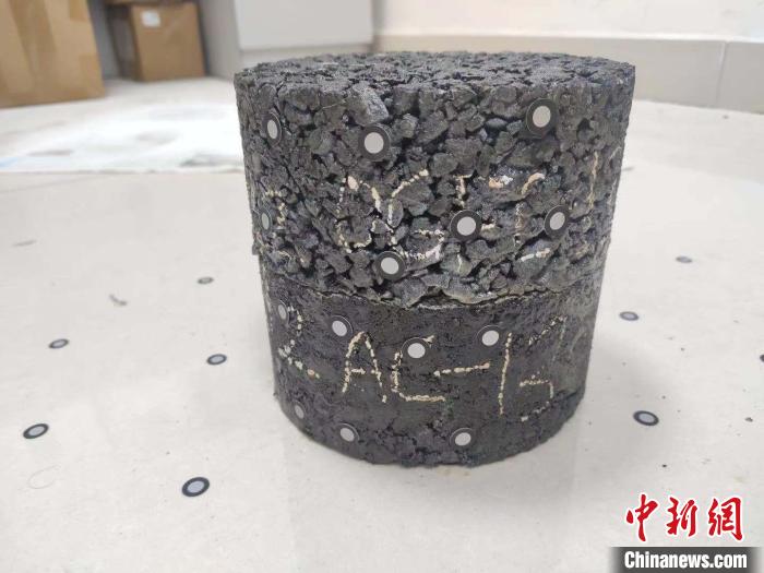 國家自然科學(xué)基金項目及雄安新區(qū)項目——瀝青路面復(fù)合試件成型?!∈茉L者供圖