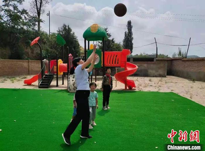 近年來,楊新莊小學(xué)教學(xué)條件在不斷改善。圖為王寶花帶領(lǐng)學(xué)生們在操場上玩耍。(資料圖) 解天文 攝