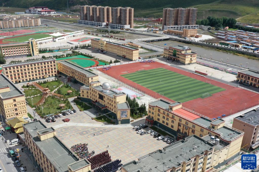 這是8月30日拍攝的碌曲縣藏族中學(xué)(無人機照片)。新華社記者 杜哲宇 攝