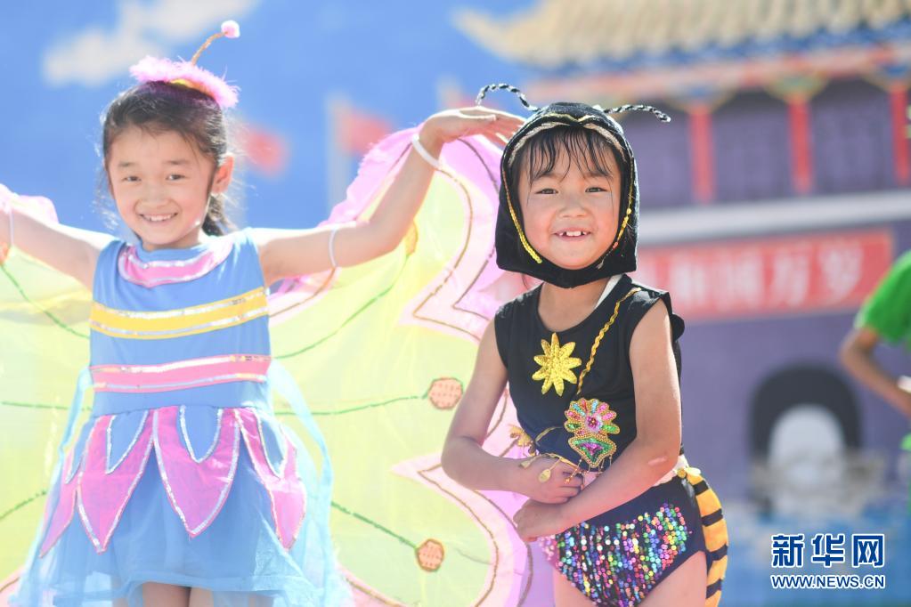 9月2日,黃南藏族自治州同仁市熱貢藝術(shù)完全小學(xué)的學(xué)生在排練繪本劇《小螞蟻找媽媽》。新華社記者 吳剛 攝