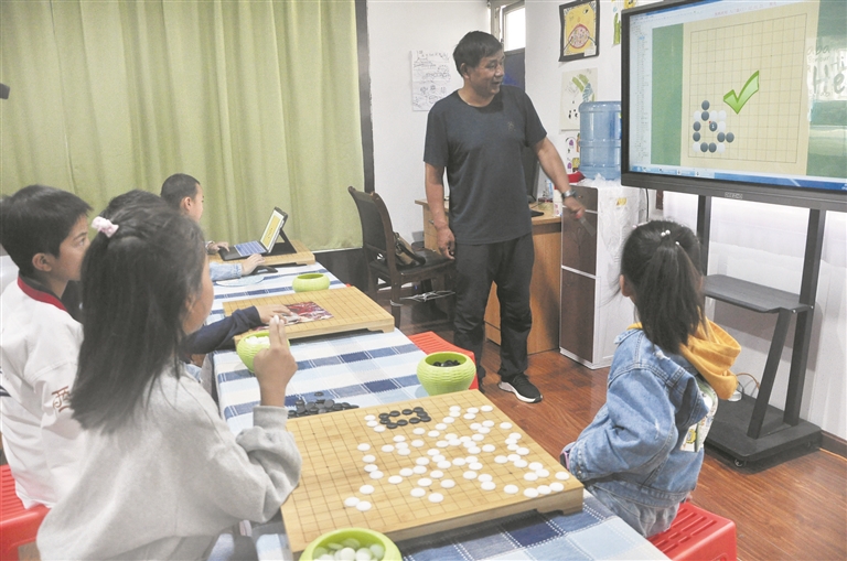 圖為孩子們?cè)诶蠋煹闹笇?dǎo)下學(xué)習(xí)圍棋技術(shù)。拉薩融媒記者 趙耀鐵攝