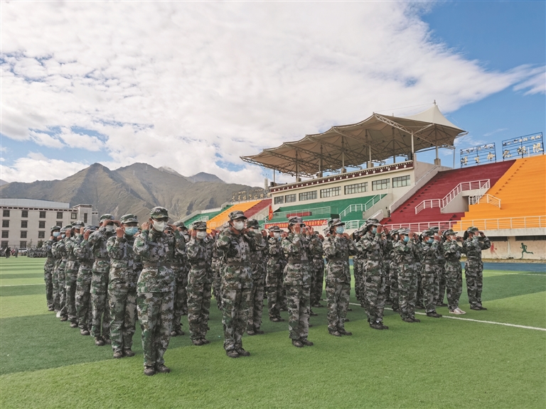 該校學(xué)生工作處主任次仁班旦說:“在校黨委的高度重視下,多次醞釀、精心部署,學(xué)校開展了2021級新生軍訓(xùn)。我們希望通過軍訓(xùn)增強(qiáng)學(xué)生的愛國主義意識,增強(qiáng)國防教育意識,把規(guī)矩、紀(jì)律納入軍訓(xùn)的課程當(dāng)中來,讓學(xué)生守規(guī)矩、學(xué)知識、學(xué)技能,鍛煉學(xué)生的意志品質(zhì)?!?/p>