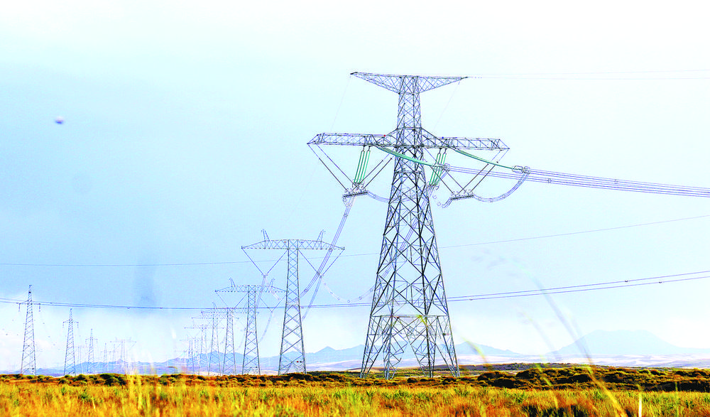 世界首條以輸送清潔能源為主的青海至河南±800千伏特高壓直流工程輸電線路。王國棟 攝