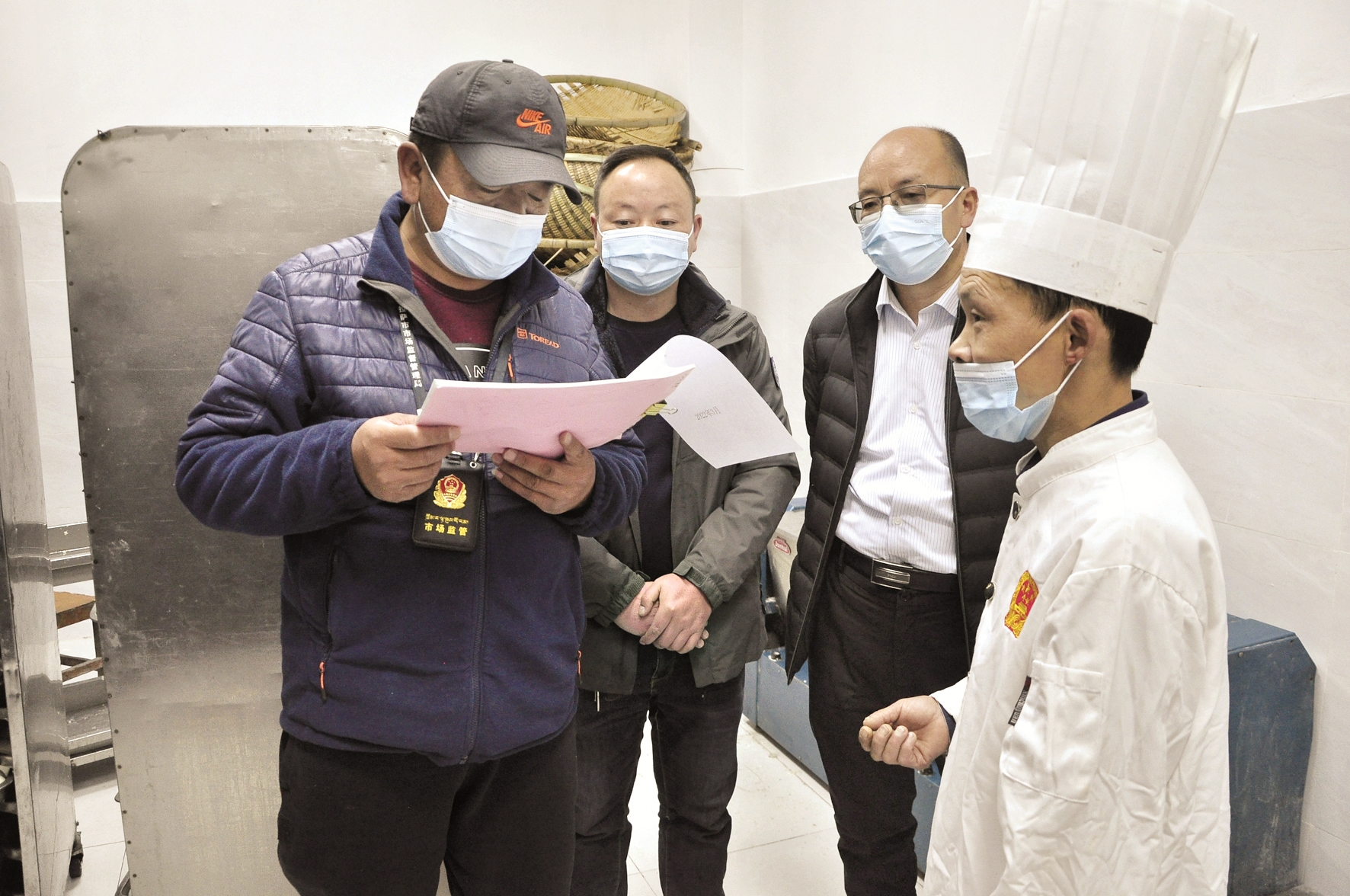 在拉薩市第二高級中學(xué),執(zhí)法人員檢查了食堂就餐區(qū)衛(wèi)生狀況,實地查看了后廚衛(wèi)生、食材倉庫、食品留樣記錄表和各項制度上墻情況;在該校饅頭房,檢查了食品添加劑使用情況和相關(guān)記錄。執(zhí)法人員實地檢查后,向?qū)W校食堂開具《餐飲服務(wù)單位監(jiān)督檢查要點表》,列出整改內(nèi)容。隨后,執(zhí)法人員還來到拉薩市第二高級中學(xué)里面的某超市,對超市陳列食品的保質(zhì)期和進(jìn)貨記錄資料進(jìn)行檢查。