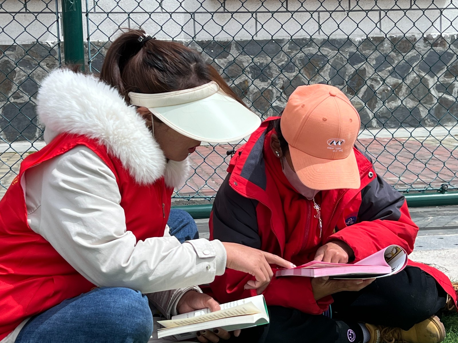 工作人員與學生誦讀經典。