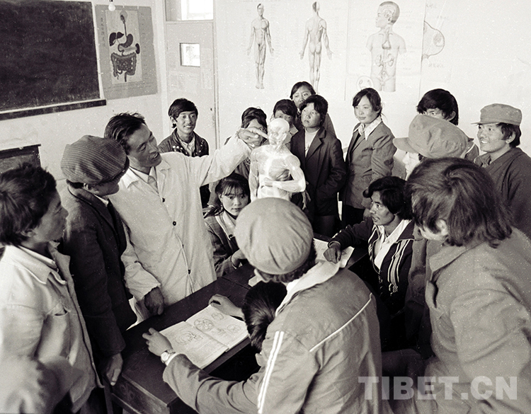 這是西藏那曲地區(qū)(現(xiàn)那曲市)中專衛(wèi)生班老師在給學生上課(唐召明1985年攝)