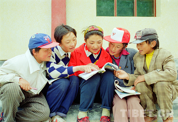 這是嘉黎縣中學學生在課余時間相互學習交流。該校由寧夏回族自治區(qū)和新疆維吾爾自治區(qū)共同援建(唐召明1997年攝)