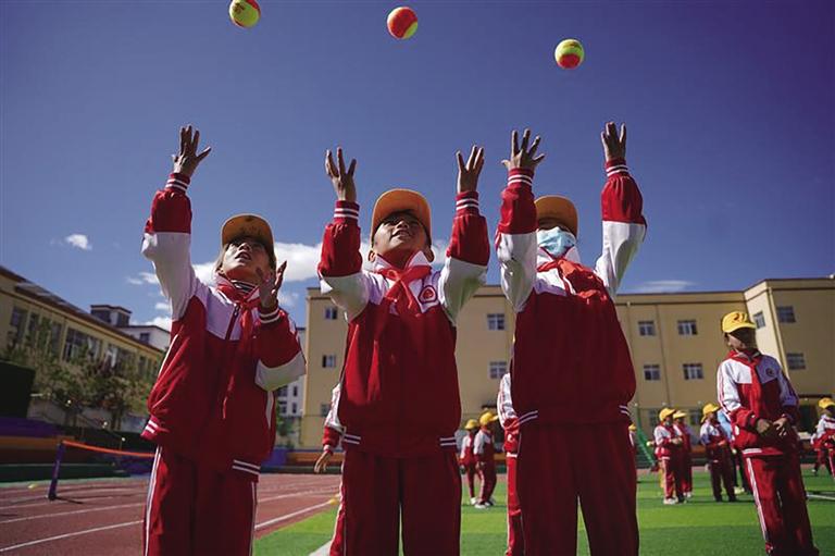 2022網(wǎng)球項(xiàng)目進(jìn)校園活動(dòng)現(xiàn)場(chǎng)。文/記者 次吉 圖/記者 阿旺尼瑪