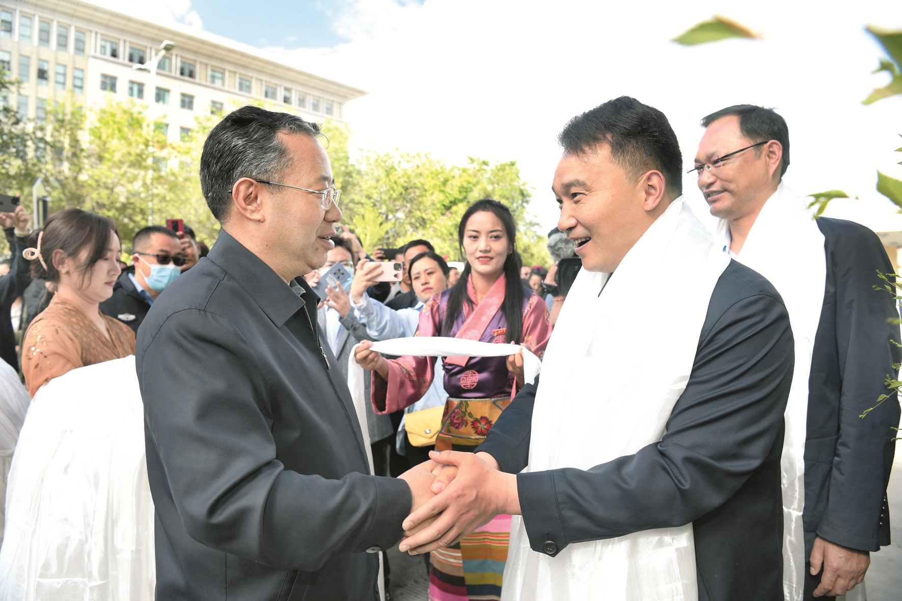 區(qū)黨委常委、市委書(shū)記普布頓珠,以及果果、陳靜、尼瑪、李忠海、普衛(wèi)東、張定成、王慧、張春陽(yáng)等拉薩市黨政軍領(lǐng)導(dǎo)和市(直)各單位、各縣(區(qū))干部職工自發(fā)來(lái)到援藏干部人才駐地、機(jī)場(chǎng),為即將離藏的江蘇省援藏干部人才送行,向大家獻(xiàn)上潔白的哈達(dá),祝福他們一路順風(fēng)、身體健康、工作順利、扎西德勒。