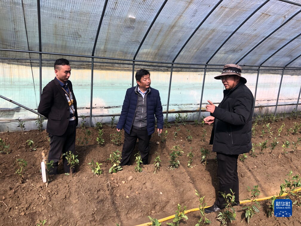 裴含龍(右二)在錯那縣勒布溝貢日鄉(xiāng)指導大棚茶葉栽培。(受訪者供圖)