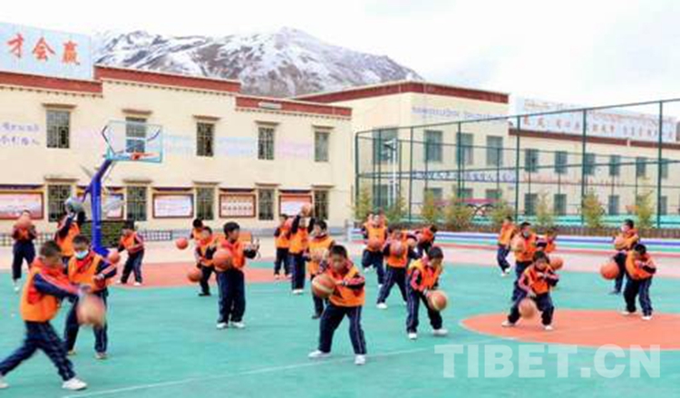 圖為西藏自治區(qū)那曲市比如縣達(dá)塘鄉(xiāng)的學(xué)生們正在上體育課 攝影:嘎瑪卓瑪