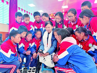 以藍(lán)天為幕布,以學(xué)校為舞臺,即使天氣寒冷也擋不住大家聆聽“精神食糧”的熱情?!斑^去,學(xué)校只有兩排小平房,土坯墻打的黑板,冬天取暖還用干牛糞呢!現(xiàn)在可不一樣了,現(xiàn)代化的教學(xué)設(shè)備、高水平的師資力量,高質(zhì)量的教學(xué)模式,讓牧民們的理念發(fā)生了根本性變化,越來越重視孩子的教育了。”斗后索寄宿制小學(xué)校長萬瑪項(xiàng)青感慨。