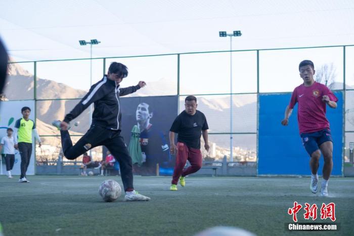 圖為12月12日,拉薩市南環(huán)路室外足球場里,市民正在踢足球比賽。 中新社記者 貢嘎來松 攝
