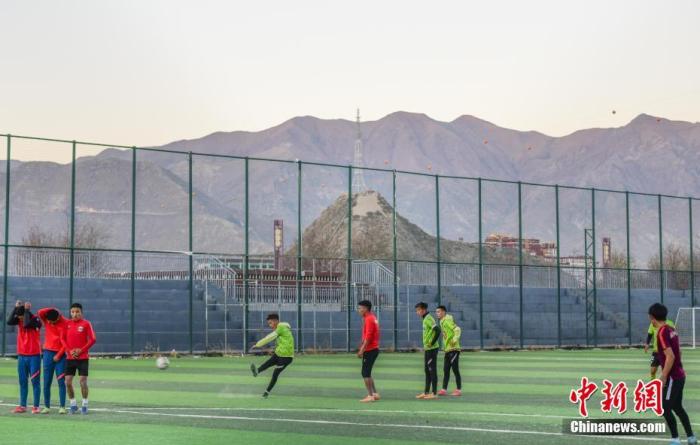 圖為11月25日,西藏那曲市嘉黎縣中學(xué)學(xué)生們?cè)凇把┥较碌膲?mèng)幻足球場(chǎng)”上進(jìn)行足球訓(xùn)練。 中新社記者 貢嘎來(lái)松 攝