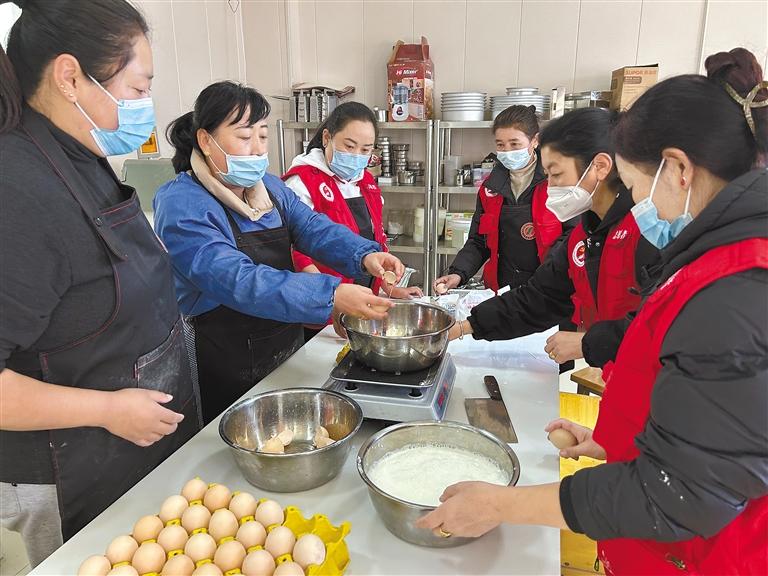 圖為社區(qū)婦女同志們?cè)趯I(yè)教師的指點(diǎn)下學(xué)習(xí)制作糕點(diǎn)。記者 張猛 謝筱純 攝