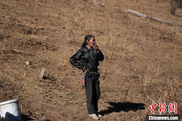 圖為丹增培楚在牧場(chǎng)使用對(duì)講機(jī)。劉冉陽 攝