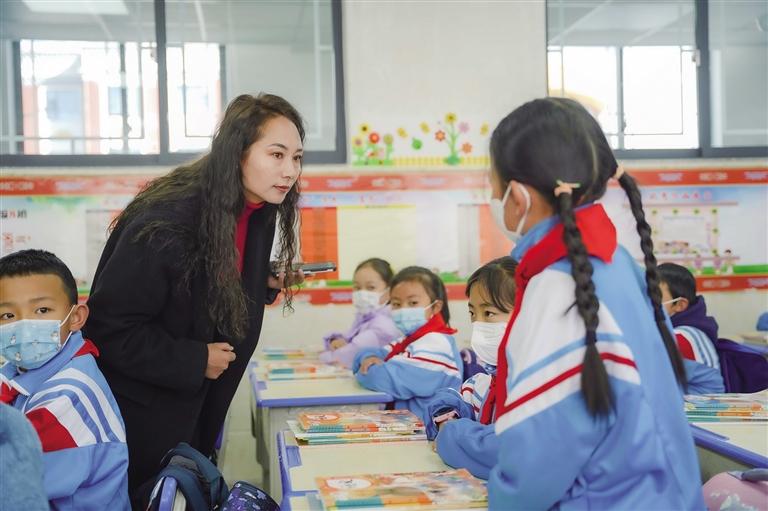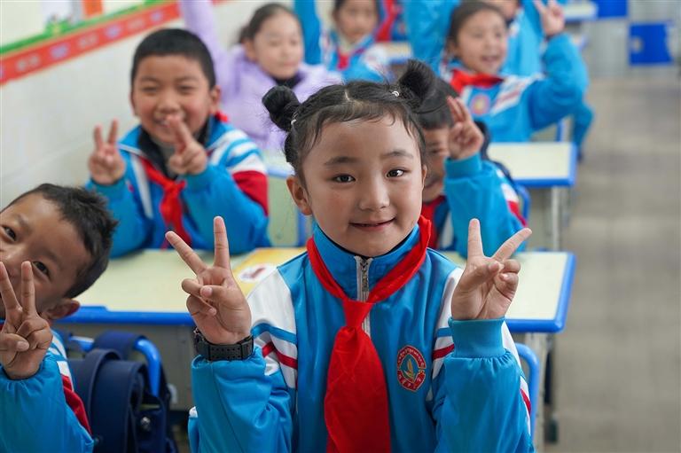 除了激動的家長,學生們的心情也很激動。在校門口,扎西旺扎和索朗培塔大老遠就認出了對方,倆人快速跑向對方,雖然戴著口罩,眼里卻充滿笑意?!案袅四敲淳媒K于見面了,太激動了,很想念我的好朋友?!痹魍χf。你假期看了什么動畫片、又新學了什么東西、去哪里玩了、作業(yè)完成得如何……太久沒見了,小伙伴們再次見面,分外親熱,大家一起嬉笑打鬧著進入校園。