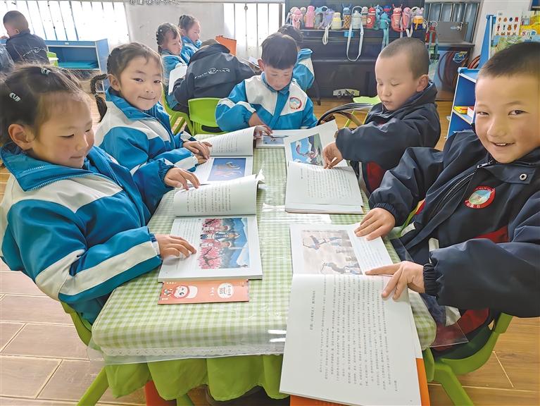 圖為孩子們興致勃勃地閱讀獲贈的書籍。