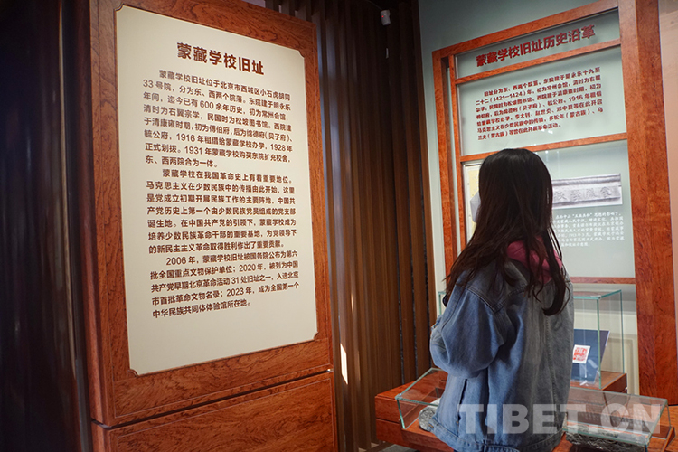 舊址西院,“蒙藏學(xué)校舊址專題展”主要展示舊址歷史沿革和革命活動,蒙藏學(xué)校學(xué)生參加五四運(yùn)動;李大釗、鄧中夏、趙世炎等對蒙藏學(xué)校青年的馬克思主義啟蒙和革命引導(dǎo);烏蘭夫、多松年 等 蒙藏學(xué)校進(jìn)步青年參加校內(nèi)外革命活動……突出展現(xiàn)中國共產(chǎn)黨成立后在這里組織開展革命斗爭的歷史?!爸腥A一脈 同心筑夢”主題展分為“共同締造新中國”“團(tuán)結(jié)建設(shè)新社會”“攜手奮斗繁榮路”“同心奮進(jìn)新時代”4個部分。展出照片420多幅,實(shí)物、文獻(xiàn)、檔案280余件,藝術(shù)展 項(xiàng) 18項(xiàng),重點(diǎn)展示新時代民族工作取得的新的歷史性成就。