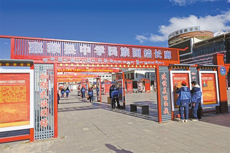 那曲市嘉黎縣中學(xué)民族團(tuán)結(jié)長(zhǎng)廊。