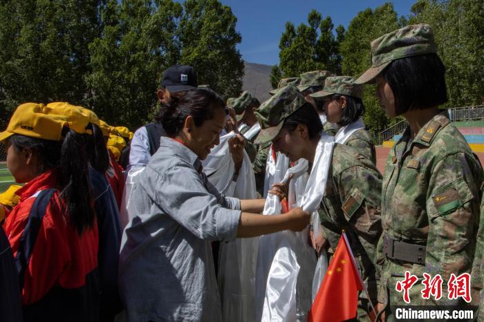 圖為該小學(xué)老師為女兵獻(xiàn)上哈達(dá)表示感謝。 朱政 攝