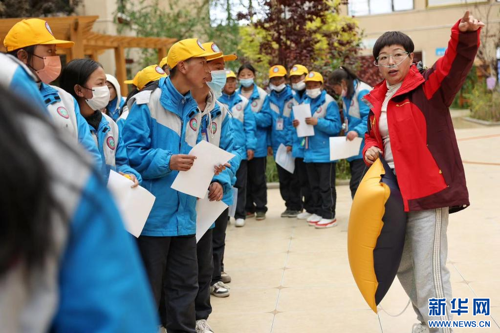 ??在西藏自治區(qū)那曲市色尼區(qū)第二中學(xué)(杭嘉中學(xué)),志愿者陳春玉正在引導(dǎo)學(xué)生排隊驗光(6月22日攝)。新華社發(fā)(趙穎碩 攝)